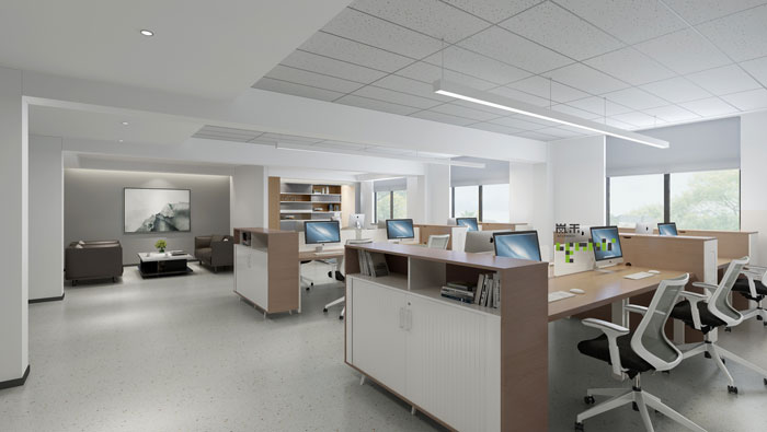 設計師對辦公樓各功能空間進行分析,結合企業品牌和文化以及空間特質,充分利用自然采光、通風,使的整個辦公空間干凈明亮,以此降低能耗,體現節能的設計理念。
