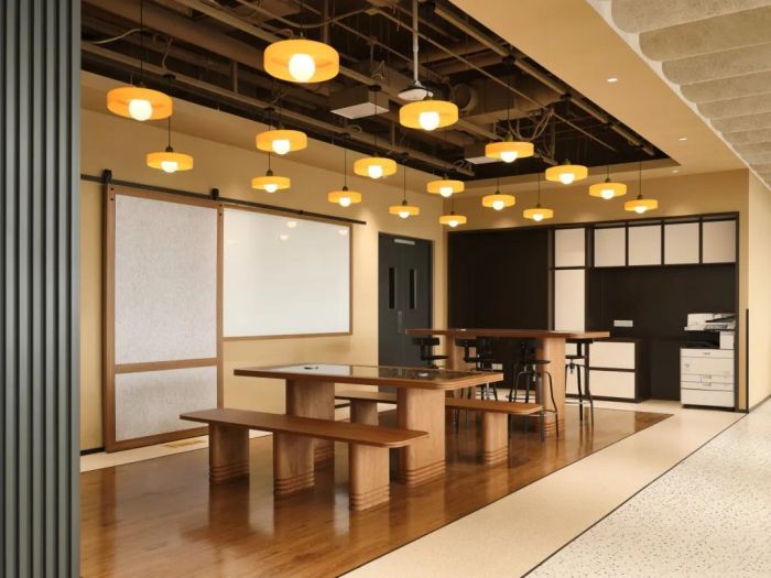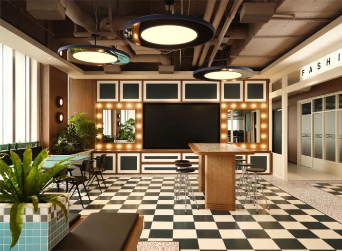 其次是精神補給的CULTURE(文學)和INTEREST(興趣)層。文學層以“書頁”形式做了頂燈和壁燈設計,柔和的燈光、墨綠的墻面宛若置身圖書館。興趣層的趣味性較強,色彩也更溫馨明亮。