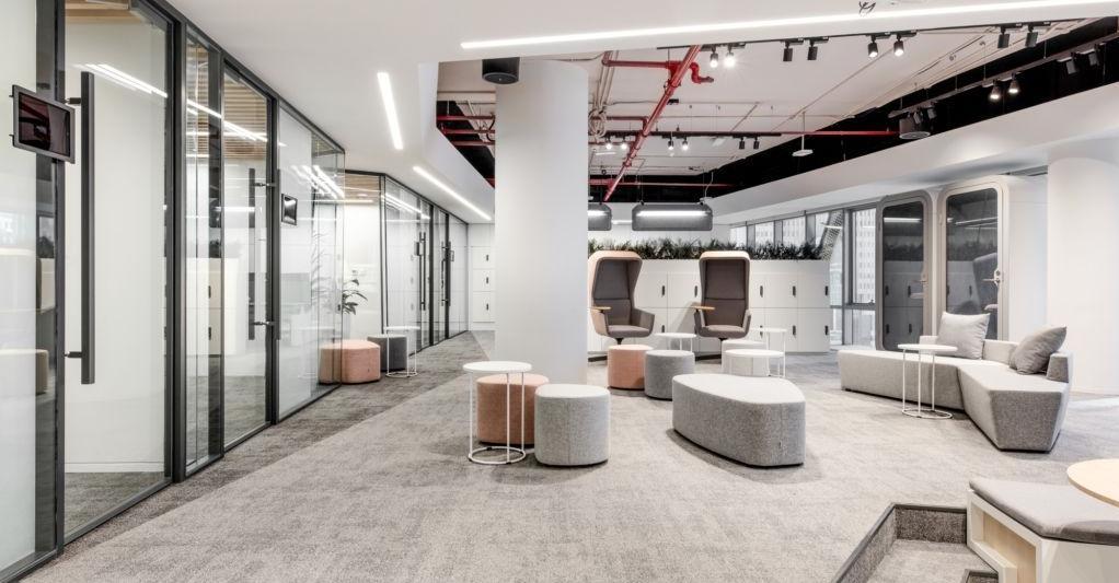 獨特的坐立辦公桌;以及伸展和力量區。設計師們最大限度地利用了自然光的流動,并通過植物和綠色植物接受了生物友好型的原則。