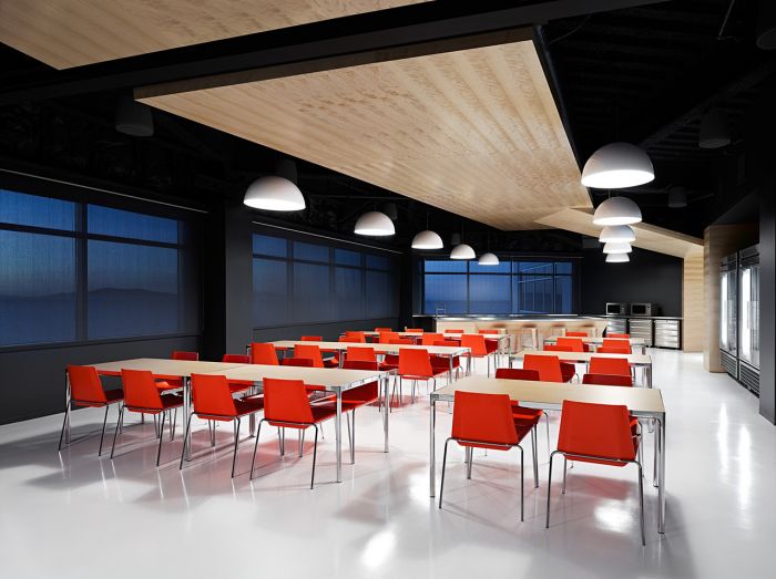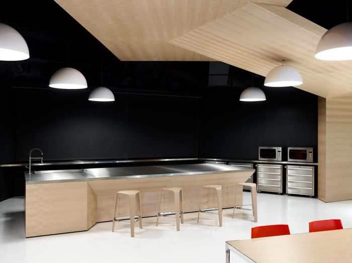 整個(gè)設(shè)計(jì)的空間感很強(qiáng),線條硬朗,色彩柔和。在會(huì)議室和冥想空間內(nèi)采用了品牌色,更加有品牌感。開放式咖啡廳可以作為大會(huì)議室和展示空間使用。
