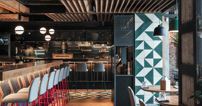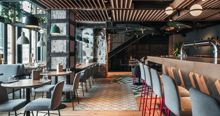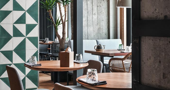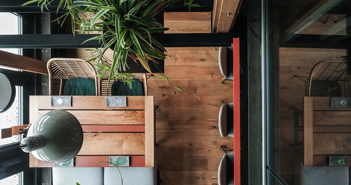 本案為特色餐館設計項目,客戶的需求是打造,能夠逃離城市喧囂的就餐環境,設計師首先簡化空間的動線,其次是多樣化,讓客人可以找到他們喜歡的地方。