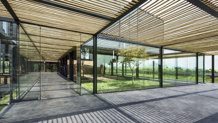 紅糖廠房景觀裝修設計:廠房位于區域的最里面,田園景觀環繞整個廠房,設計師之所以這樣設計,一來是滿足當地的需求,二來是滿足環保的需要,三來是滿足旅游的需要。