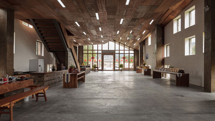 廠房走廊裝修設計:在這里雨水充足,在下雨時節可以坐在走廊上,看看蒙蒙細雨、看看大自然的變化,也是一種心靈的享受,設計師在不破壞自然的前提下,打造優質的生活環境。