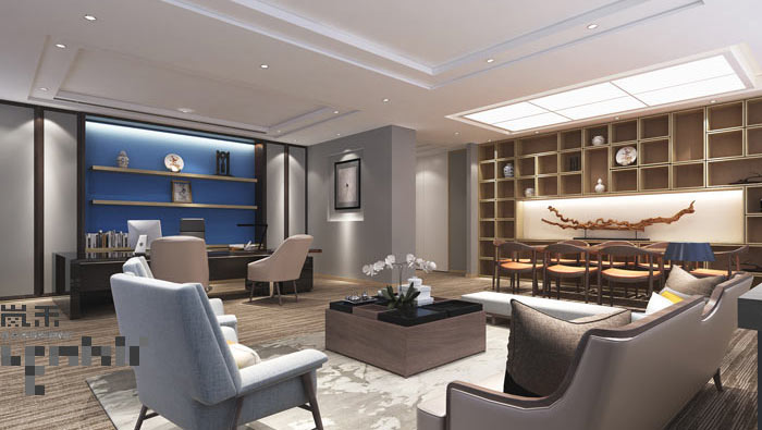 總經理辦公室的設計:設計師在設計的時候,將辦公區域、休息區域、接待區域、交流區域、展示區域相互融合在一起,對于設計師來說,多重融合的空間在于極簡、在于融合,故此設計師經過無數次的融合、打亂、融合、打亂的方式不斷進行重組,在不斷重組的過程中,完成了多功能空間的相互融合。