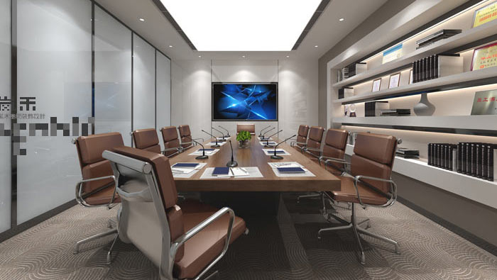 會議室的設計:設計師在設計的時候,在墻壁的一側規劃出一個展示區域,這樣既可以為會議空間增添新的功能,同時又可以節約成本,讓員工可以時時刻刻感受到企業的榮譽,以此作為鞭策與動力讓員工各司其側,為了企業的發展不斷的努力。