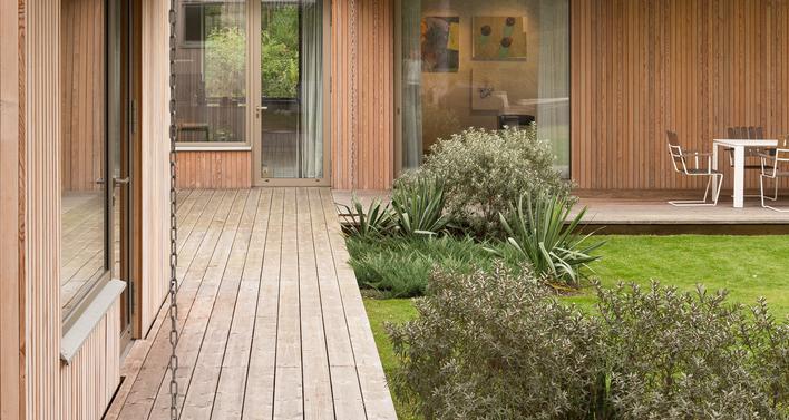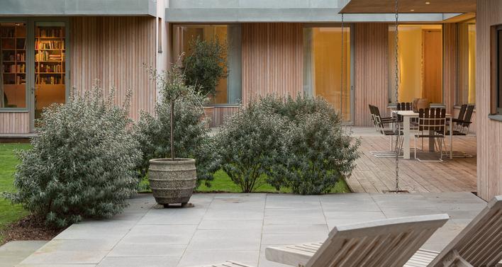 一間自然森林別墅裝修設計案例,空間面積449平方米。通過設計,房子劃分了三個不同的花園空間,每一個有自己的特點。一個露臺連接著廚房和客廳。西面提供了坐、社交和就餐的空間。