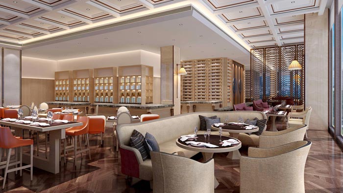 餐廳的設(shè)計(jì):足不出戶是酒店給人的第一感受,在這里就是希望形成一個(gè)良好的內(nèi)部循環(huán),讓客戶在內(nèi)部體驗(yàn)到所有需要的服務(wù),在這里設(shè)計(jì)師以家對餐廳進(jìn)行定義,在設(shè)計(jì)師看來現(xiàn)在社會(huì)最缺的就是一種氛圍,一種家的氛圍,設(shè)計(jì)師希望客戶在這里可以體會(huì)到家的感覺。