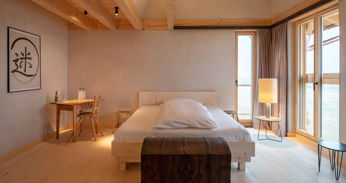 本案為度假民宿設計項目,一樓是公共使用的開放區域,如酒吧、派對等,舒適的客房,獨立的家具,氛圍質樸而現代,為客戶提供一個安靜、舒適的住宿環境。