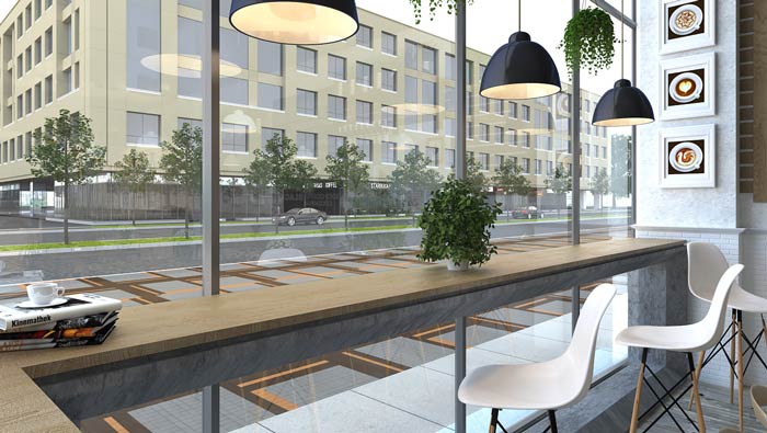 街角的咖啡店整體設計:設計師需要的不僅僅是室內(nèi)的設計,同時也需要與室外進行連接,戶外的陽光、建筑都在設計師的預想之中,設計師要做的就是將設計與周圍相互融合。