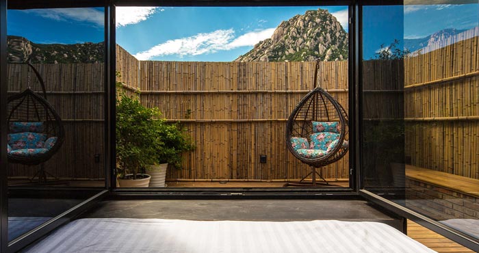 本案為鄉村民宿改造項目,定位于“微度假”的精品民宿,設計師首先平衡周邊的生態環境,在增加房間的采光量的同時。保證其私密性,提升客房的舒適度。