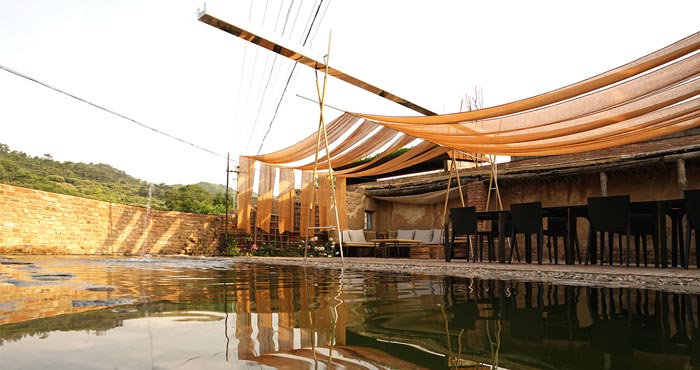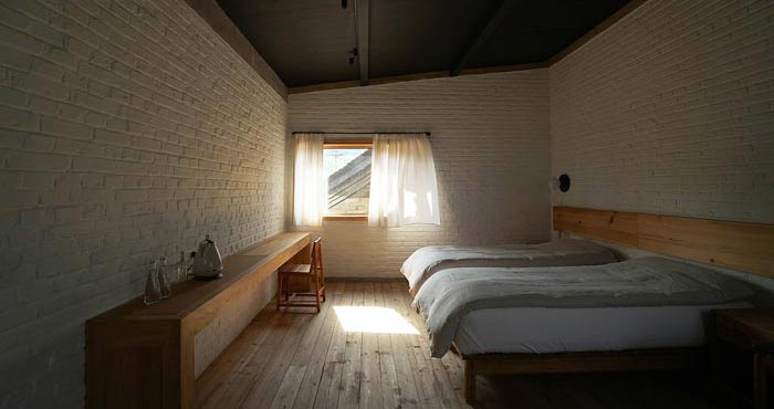 本次為農家民宿裝修設計項目,周圍群山環繞,山泉水從門口流過,設計師在設計中小心翼翼,目的就是調和設計與環境的互補關系。