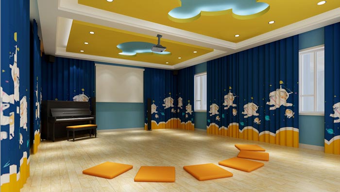 音樂教室的設(shè)計:對于每一個人來說,音樂都是美好的,對于孩子來說更是如此,當老師彈起鋼琴的時候,孩子們在后面翩翩起舞,無疑可以激發(fā)孩子們對于音樂的興趣,這里的一切都志在激發(fā)孩子的興趣,然后在興趣的指引下,達到教學(xué)的目的。